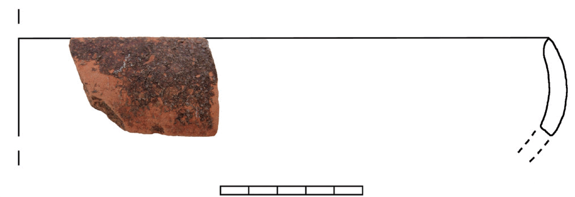 Ulomak oboda i tijela tanjura. Keramika je narančaste boje bez primjesa s finim premazom u tamno crvenoj nijansi.