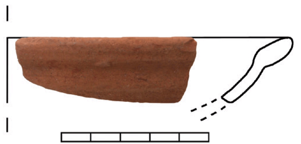 Ulomak oboda i tijela tanjura. Keramika je narančaste boje bez primjesa s finim premazom u istoj nijansi.