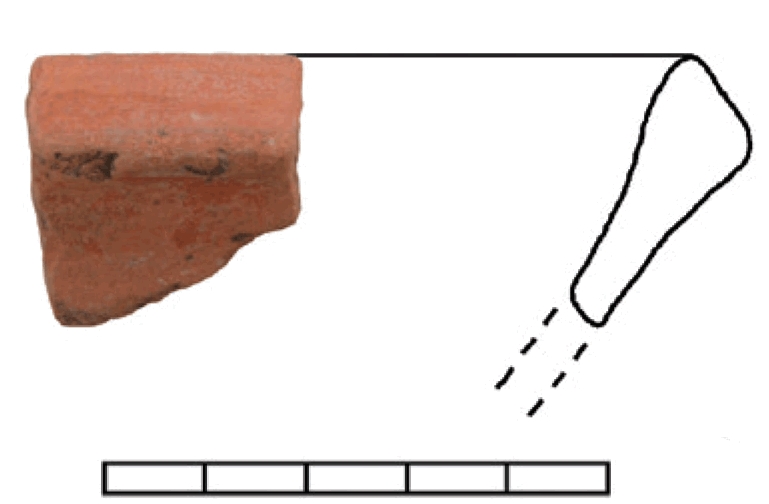 Ulomak oboda i tijela zdjele sa zadebljanjem na vanjskoj strani. Keramika je narančaste boje bez primjesa s finim premazom u istoj nijansi.