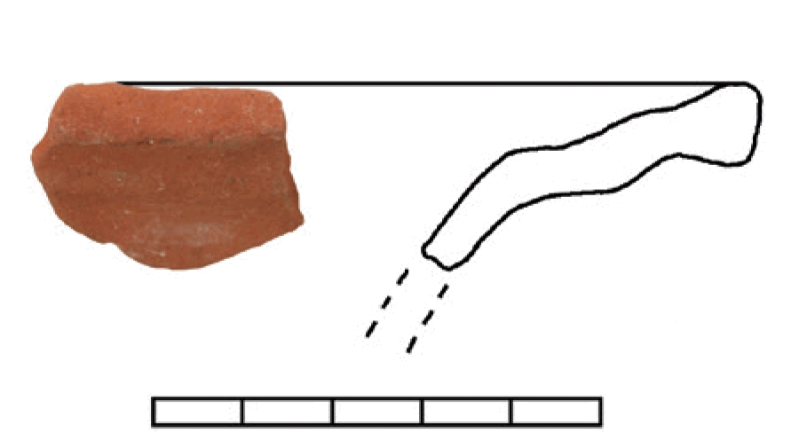 Ulomak oboda tanjura. Keramika je narančaste boje bez primjesa s finim premazom u tamno crvenoj nijansi.