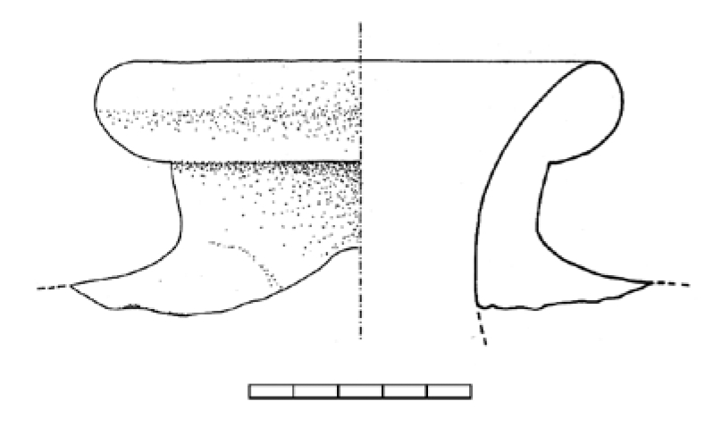 Ulomak naglašenog prstenasto oblikovanog oboda amfore. Keramika je žute do narančaste boje.