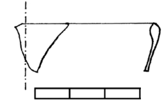 Ulomak zakošenog zadebljanog i zaobljenog oboda, prozirno maslinasto zelenkasto staklo.