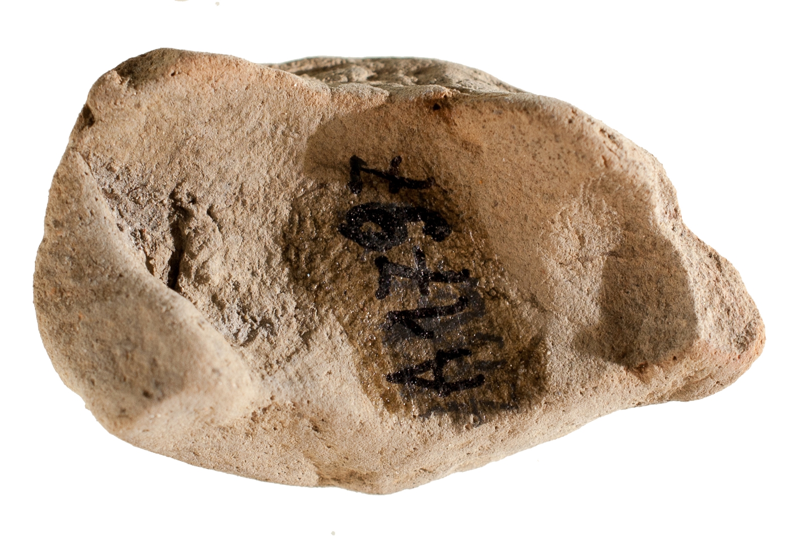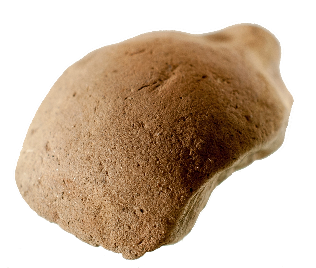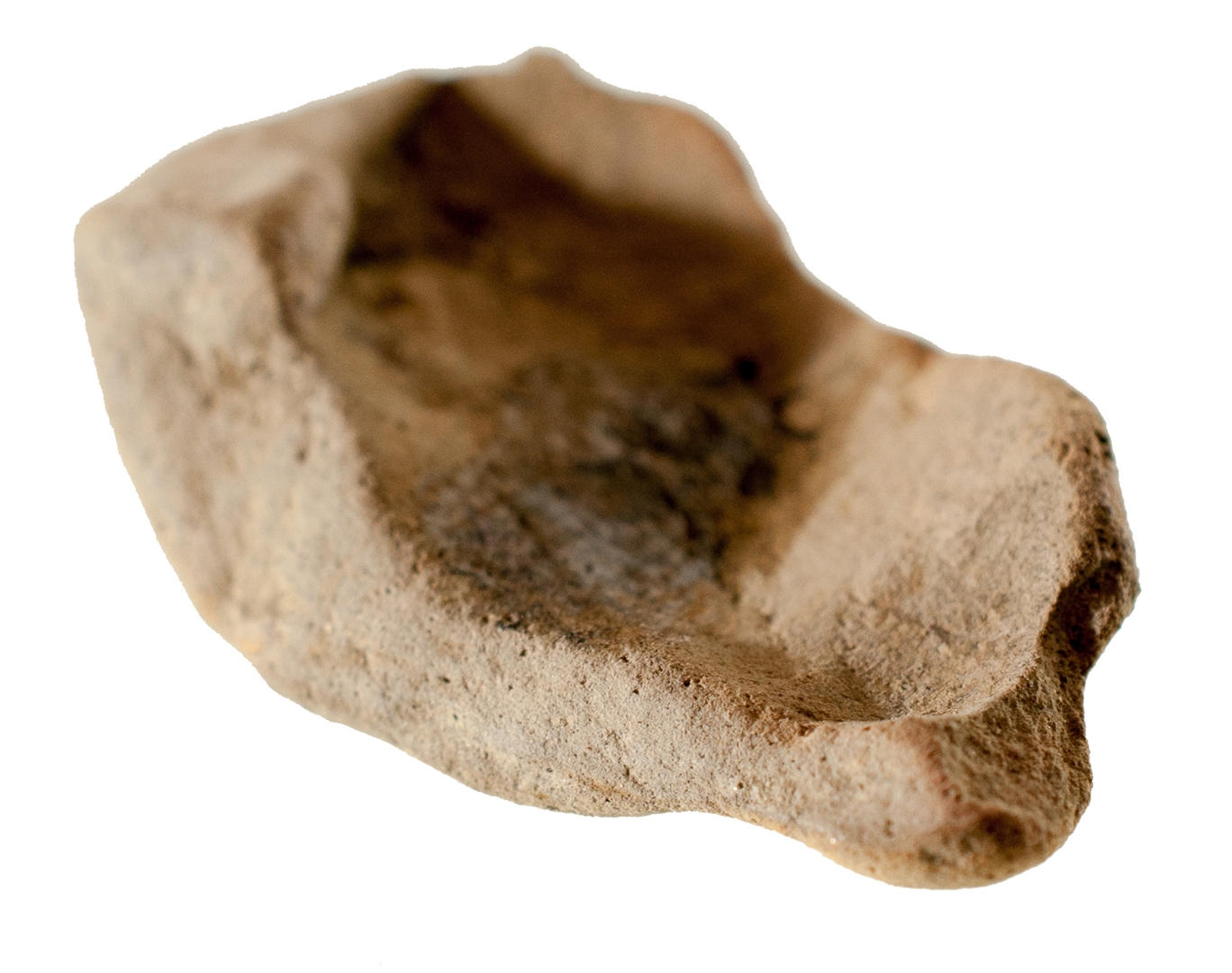 Ulomak glave keramičke figurice. Figurica šuplja iznutra. Oker, dobro pročišćena glina.