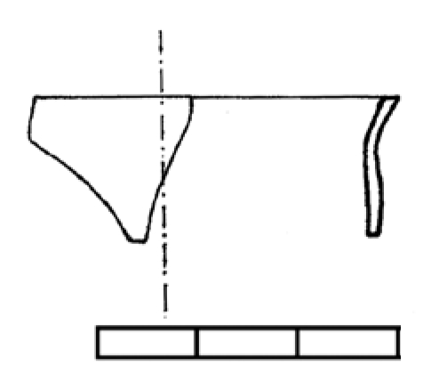 Ulomak razgrnutog ravno odsječenog oboda konusne čaše na kraju zavrnutog prema unutra, prozirno zelenkasto staklo.