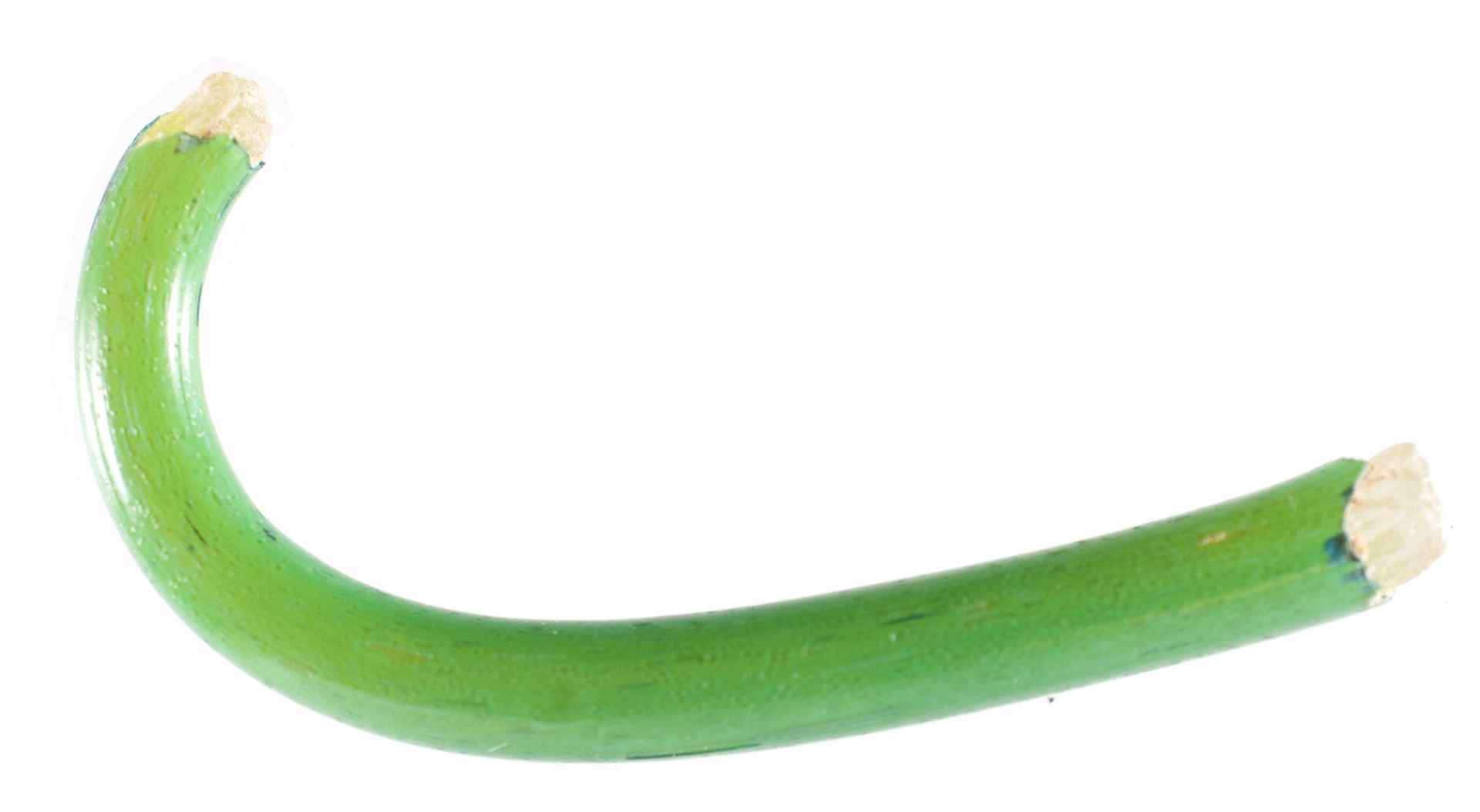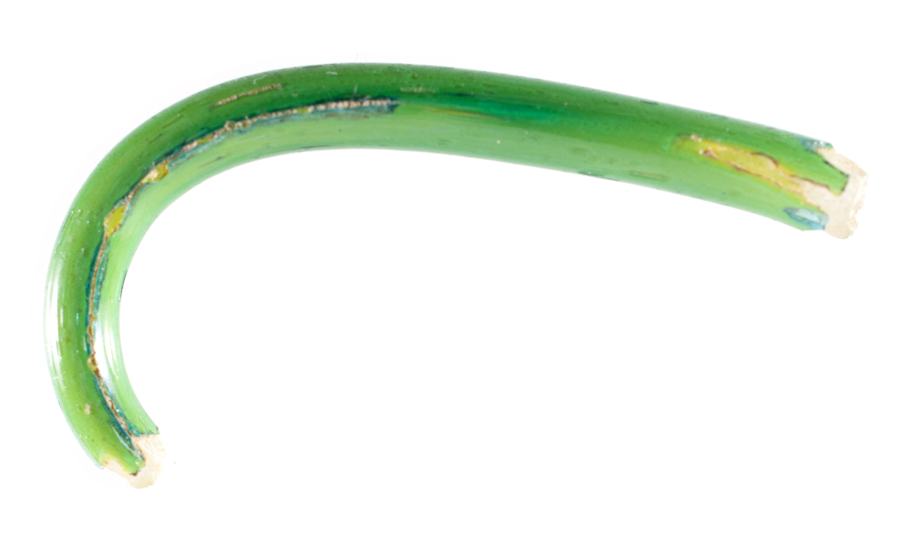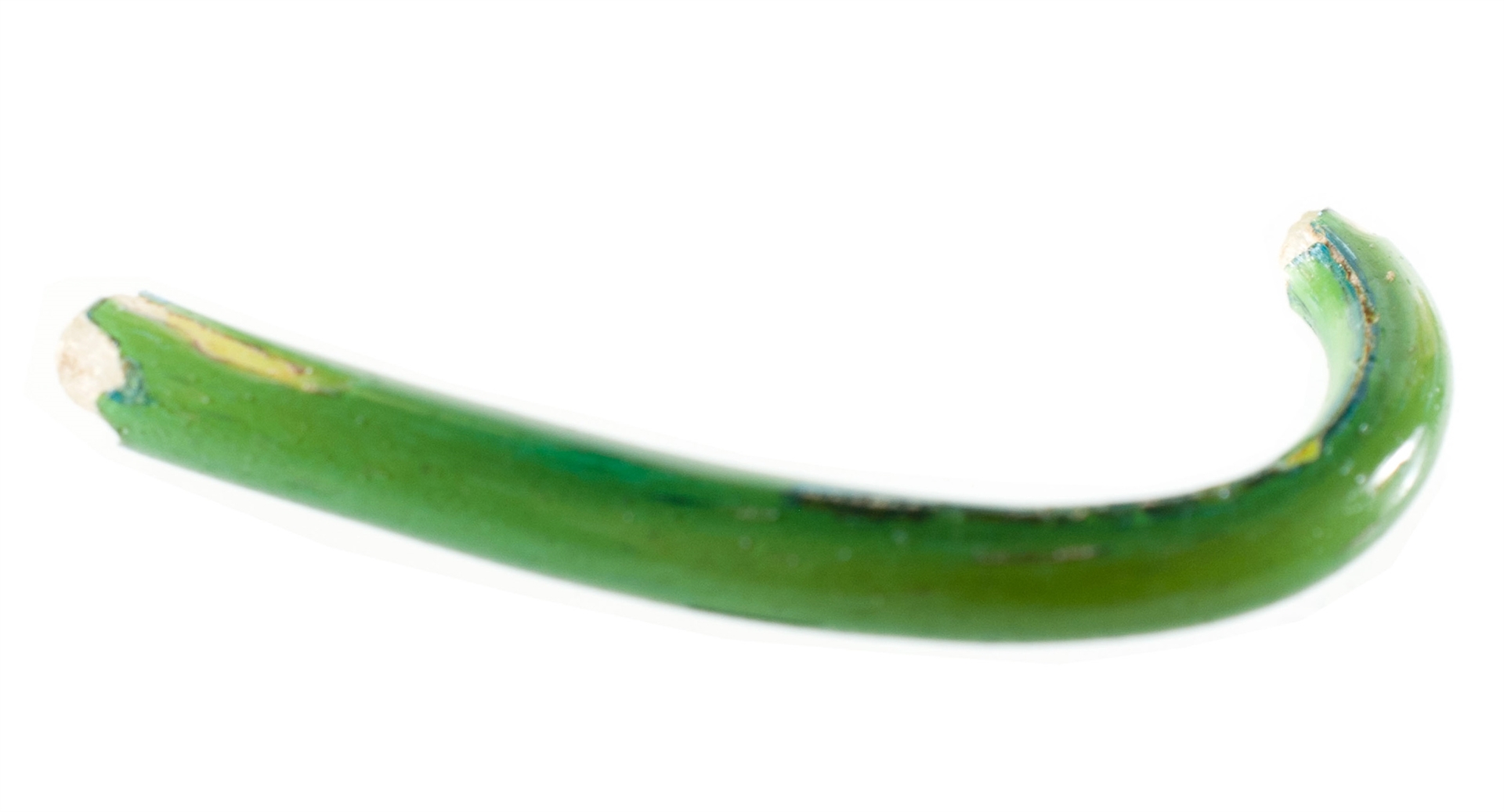 Svinuti stakleni štapić svijetlozelene boje sa zelenim preljevom.