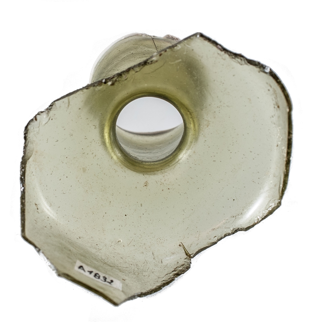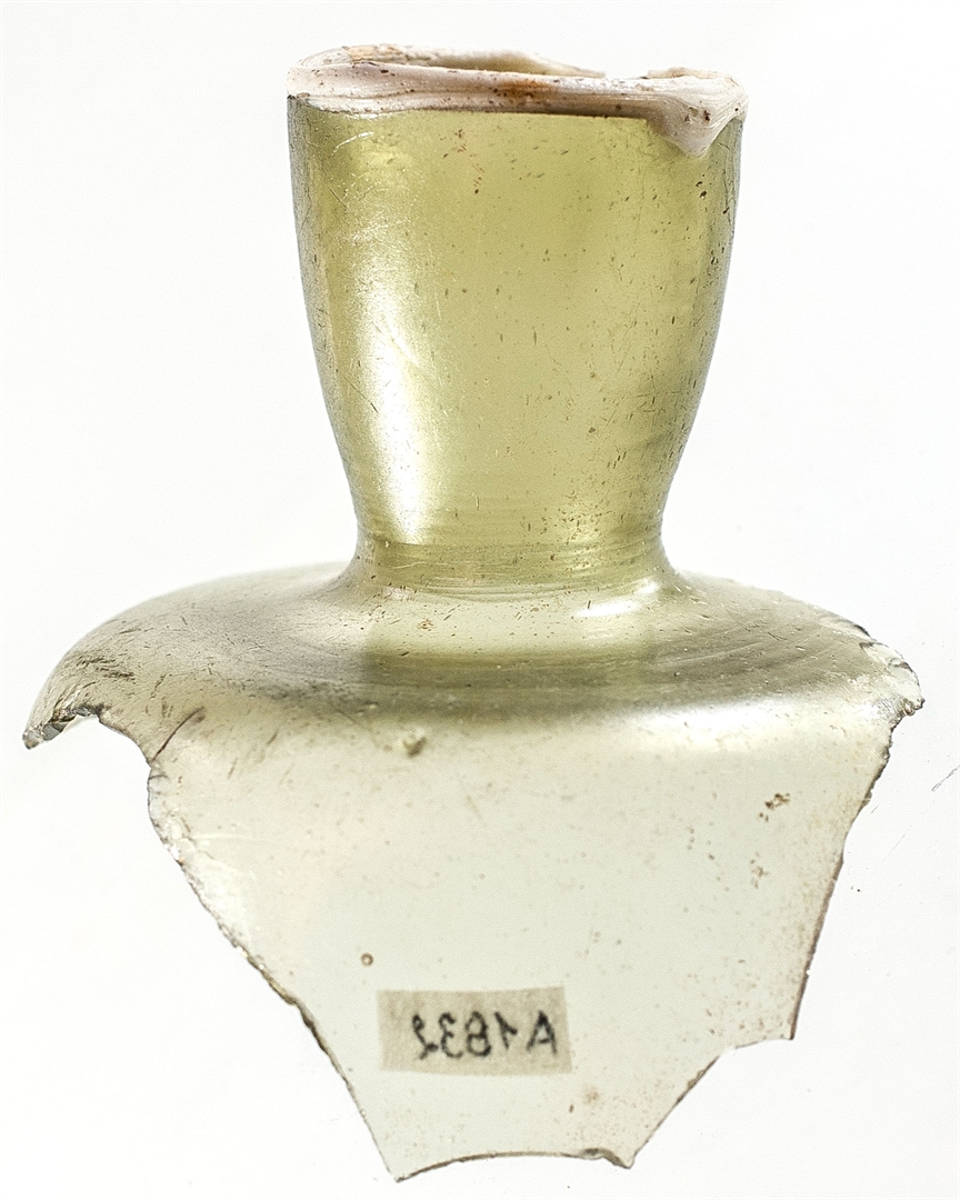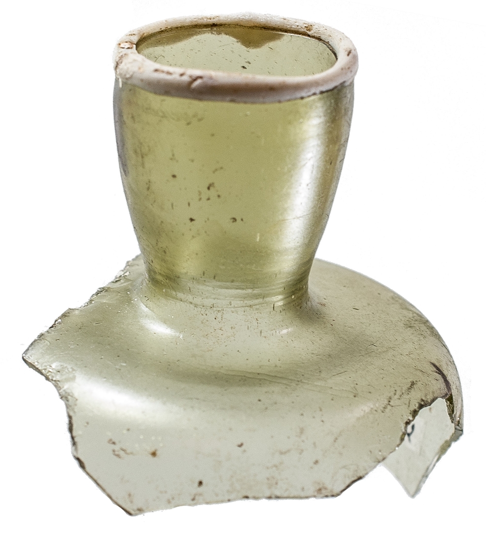 Gornji dio maslinastozelene boce s čunjastim grlom i bijelim obrubom oboda.