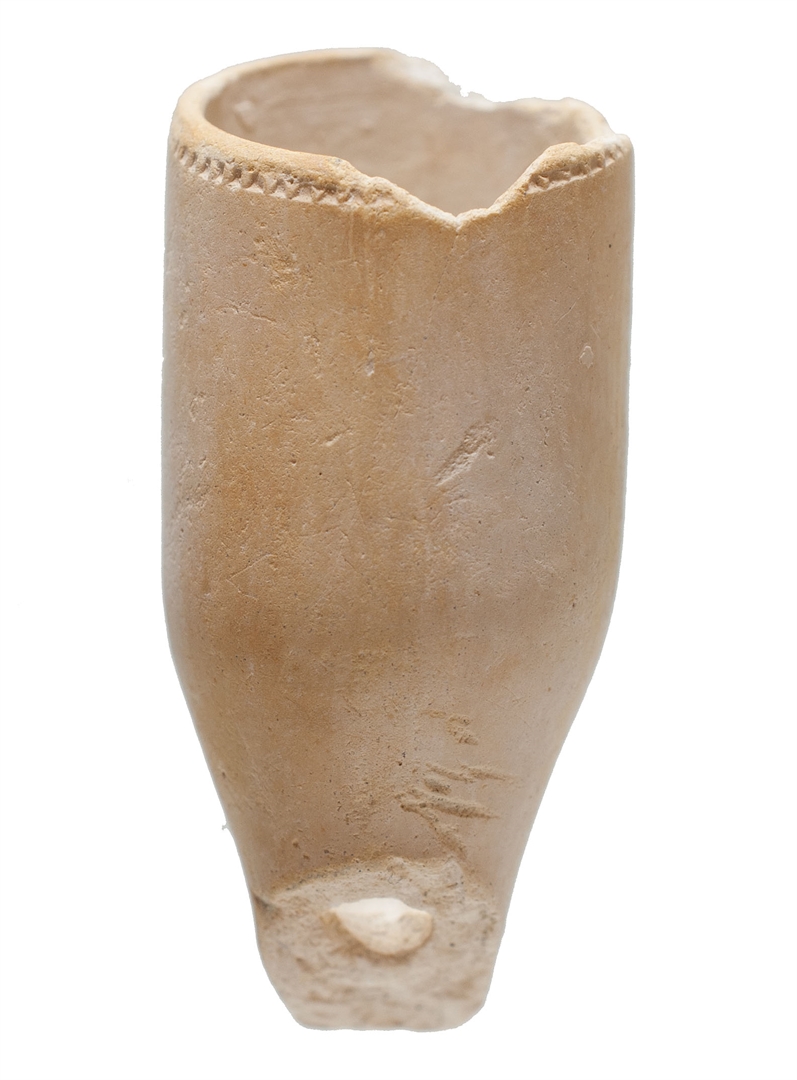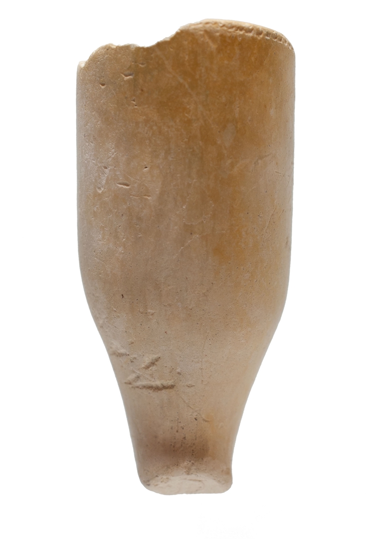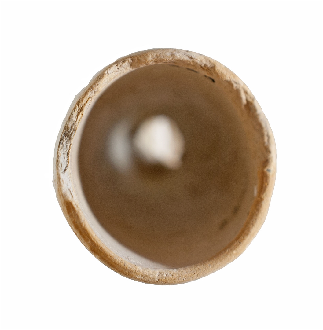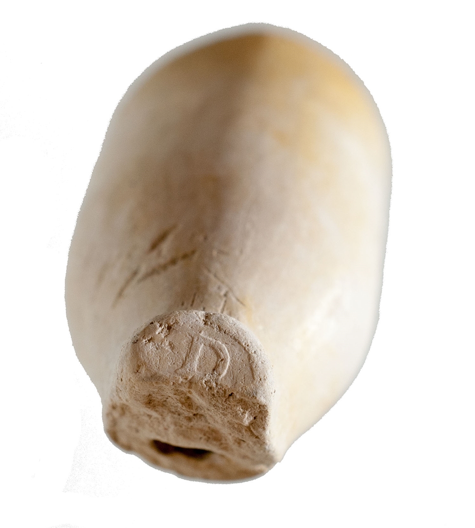 Zapadna lula bijele boje s pečatom D[IV]?. Visina lule = 31 mm Dužina lule = Promjer prostora za duhan = 15 mm Unutrašnja visina prostora za duhan = 30 mm Unutrašnji promjer tuljca = ? mm