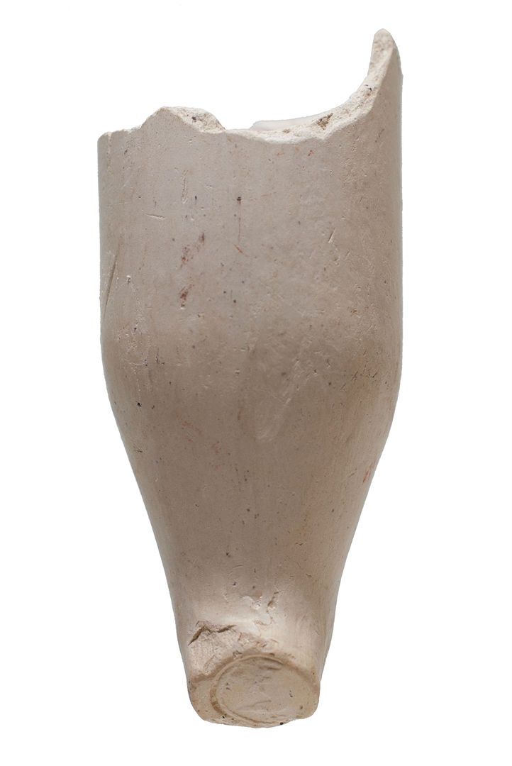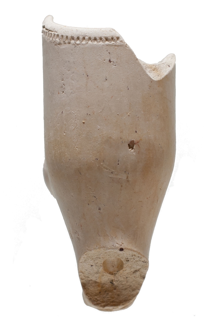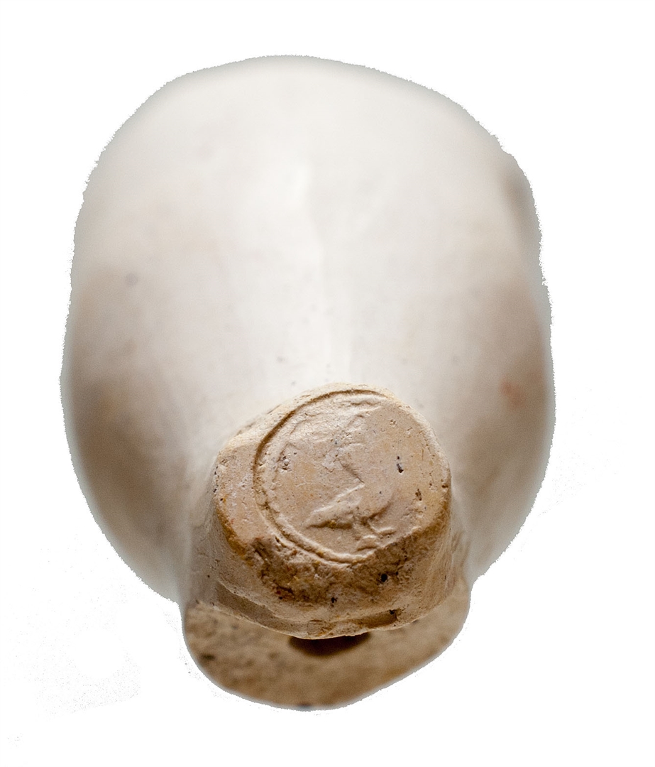 Zapadna lula bijele boje s pečatom guske koja stoji nadesno i krunom iznad nje. Visina lule = 33 mm Dužina lule = Promjer prostora za duhan = 14 mm Unutrašnja visina prostora za duhan = 27 mm Unutrašnji promjer tuljca = ? mm