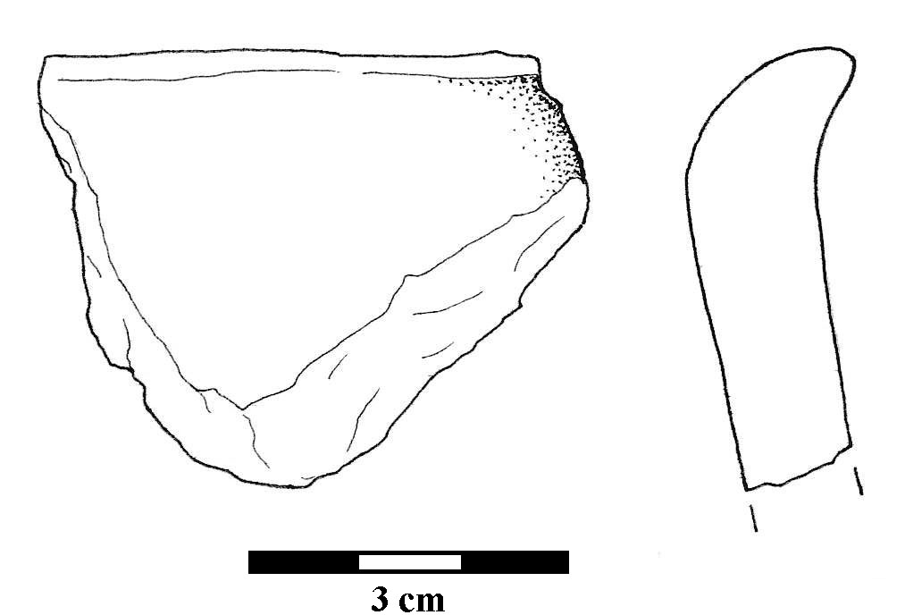 Ulomak gornjeg djela posude na kojem se nalazi prema van izvijeno ušće. Keramika je s vanjske strane narančaste a presjek sive boje.