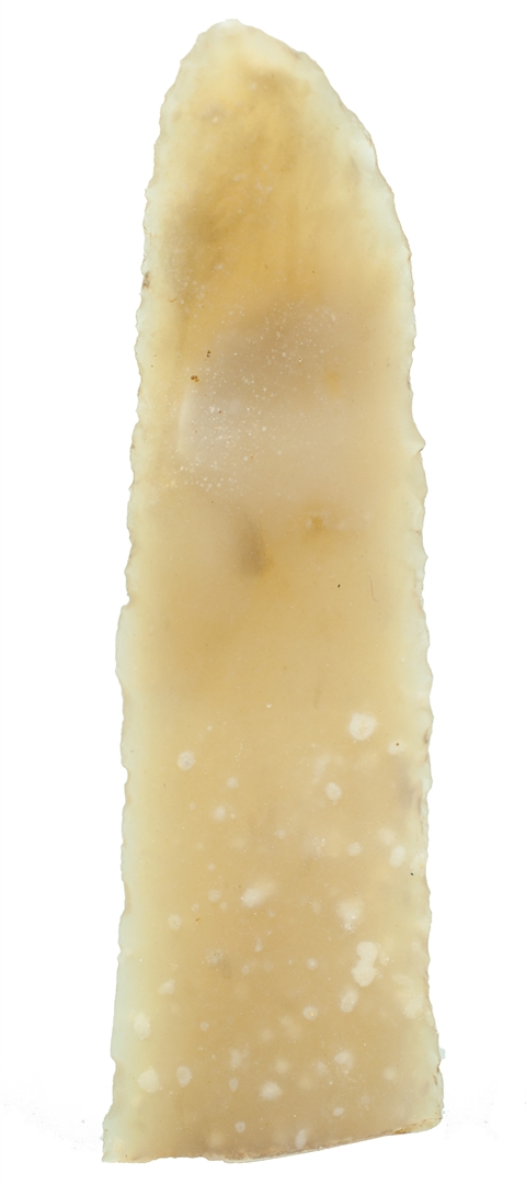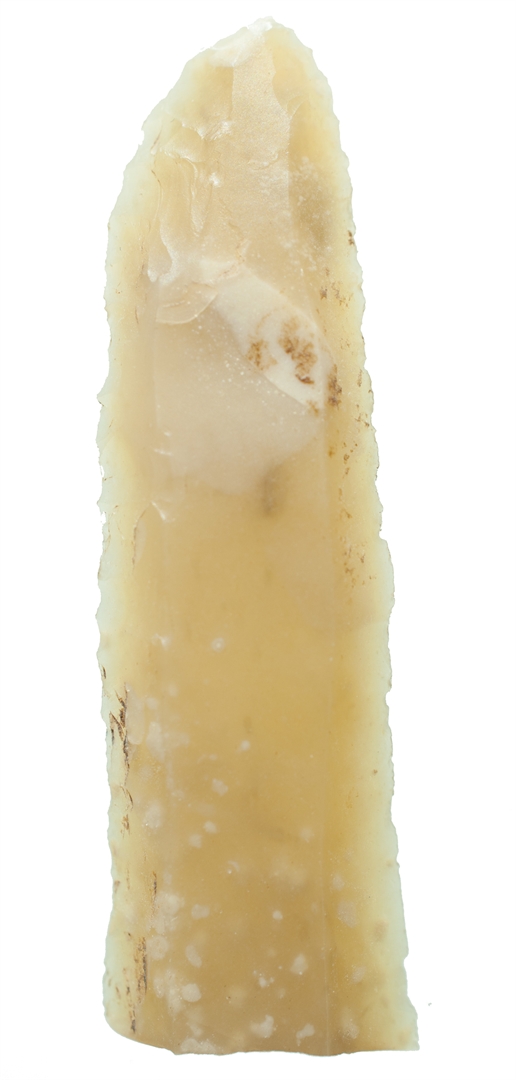 Kremeni nož prema gore zakošenog vrha. Krajje ravno odsječen.