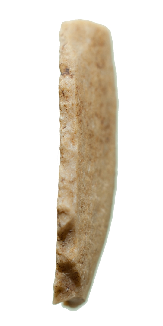 Kemeni nož polukružnog vrha i oštećenog donjeg djela.
