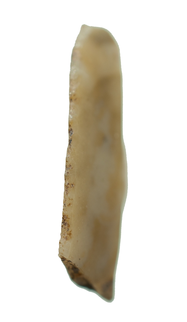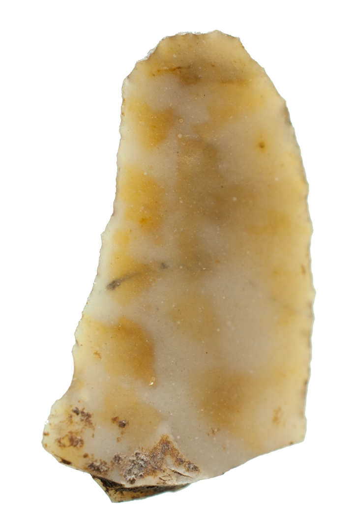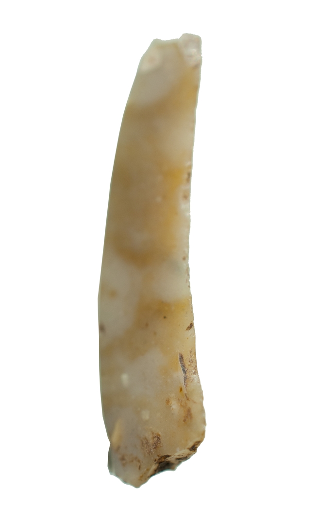 Vrh kremenog noža polukružnog presjeka. Nedostaje donji dio.