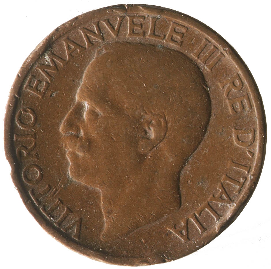 Centralni dio kovanice zauzima profil osobe sa pogledom u lijevo. Uz rub cijele kovanice proteže se natpis VITTORIO EMANVELE III RE D''ITALIA