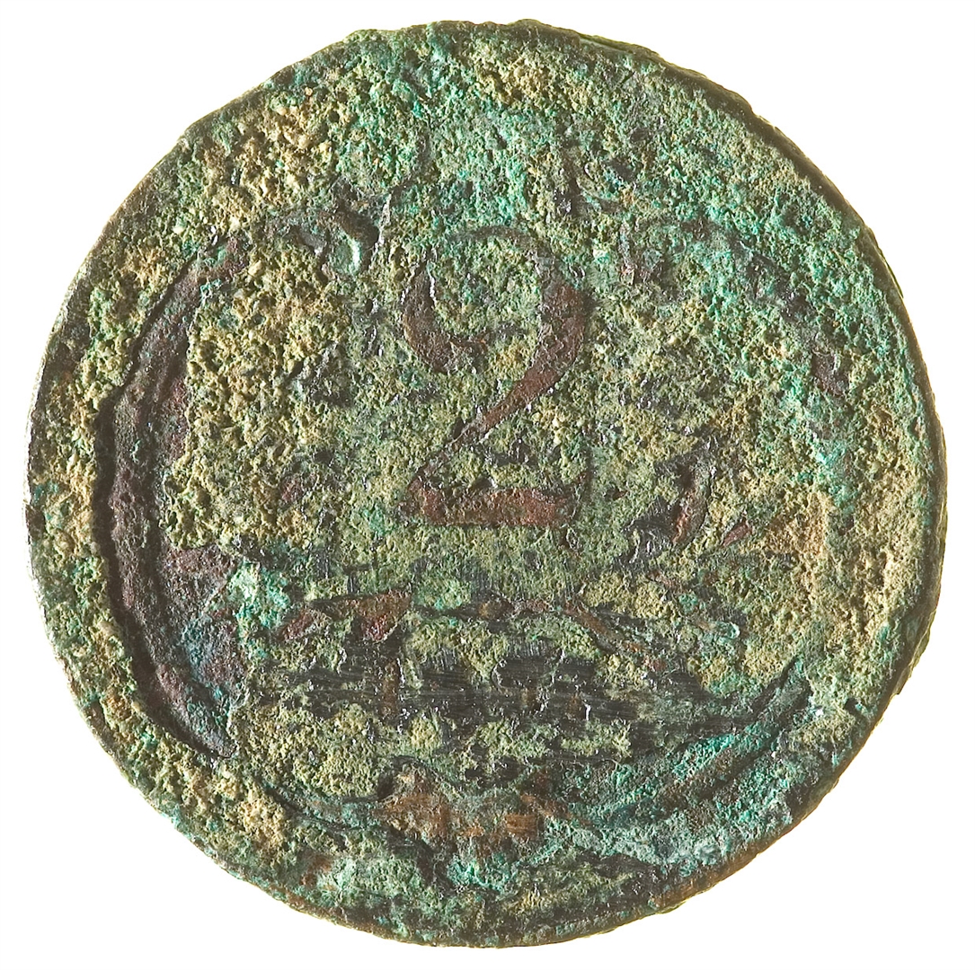 Revers: U gornjem djelu ovalnog okvira broj 2. Ispod njega maslinova grančica. Godina kovanja je nečitka