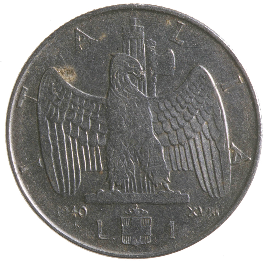 Centralni dio zauzima orao raširenih krila iza kojeg se nalazi fascio.Uz 2/3 ruba nalazi se natpis ITALIA. Ispod orla nalazi se grb , a sa njegove lijeve strane veliko slovo L. i godina 1940. Ispod nje nalazi se malo slovo R. Desno od grba nalazi se broj 1, a pored njega rimski broj XVIII.