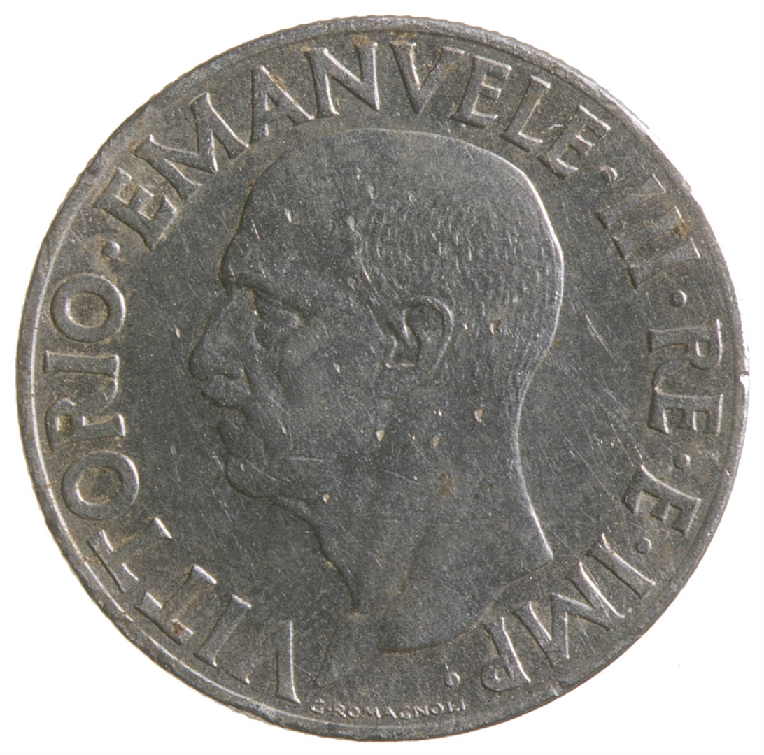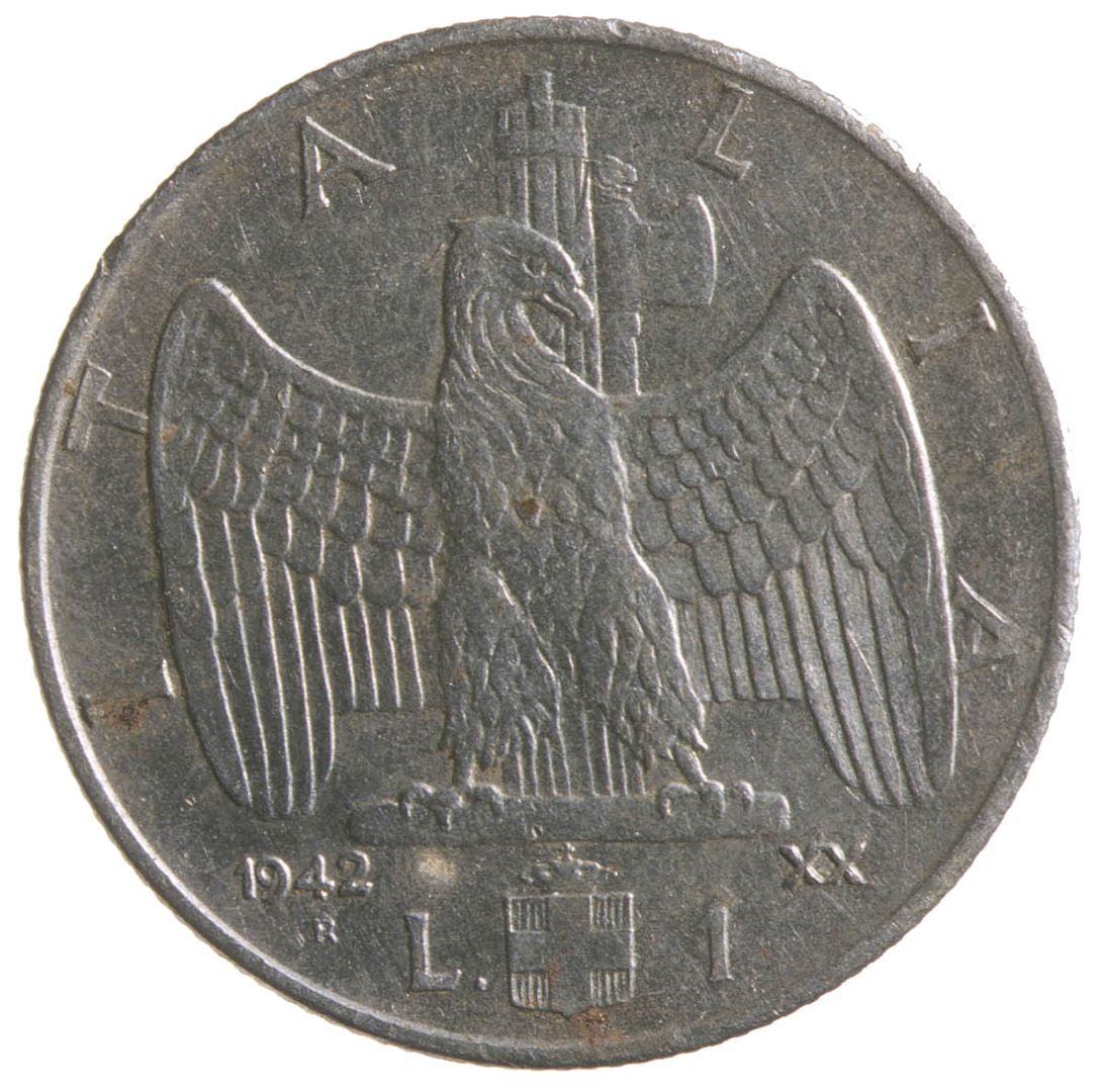 Avers: Centralni dio kovanice zauzima profil muške osobe sa pogledom u lijevo. Kružno uz rub kovanice proteže se natpis VITTORIO. EMANVELE. III. RE. E. IMP.. Na dnu uz rub nalazi se natpis G.ROMAGNOLI. Revers: Centralni dio zauzima orao raširenih krila iza kojeg se nalazi fascio.Uz 2/3 ruba nalazi se natpis ITALIA. Ispod orla nalazi se grb , a sa njegove lijeve strane veliko slovo L. i godina 1942. Ispod nje nalazi se malo slovo R. Desno od grba nalazi se broj 1, a pored njega rimski broj XX.
