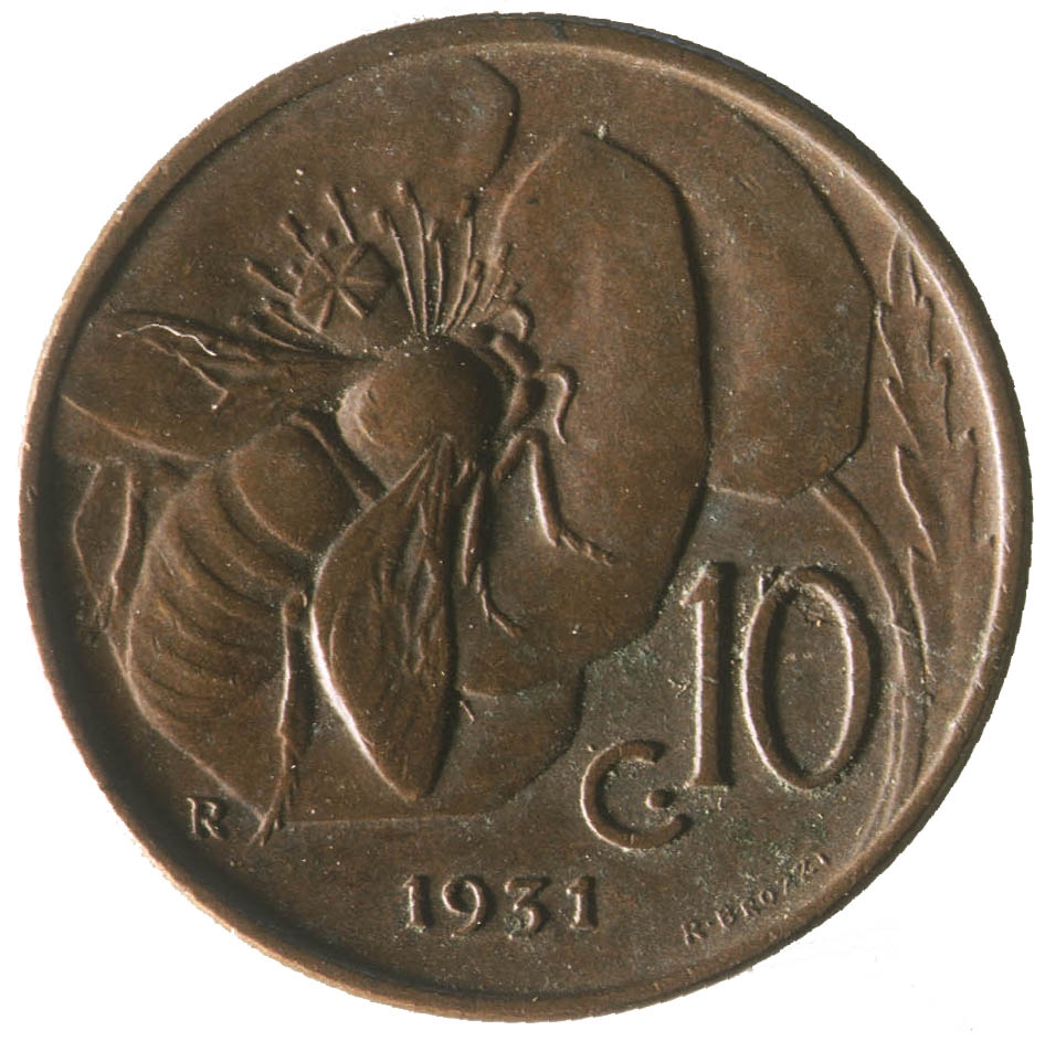 Avers: Centralni dio kovanice zauzima profil osobe sa pogledom u lijevo. Uz rub cijele kovanice proteže se natpis VITTORIO EMANVELE III RE D''ITALIA. Revers: Dvije trećine površine zauzima prikaz pčele na cvijetu. Uz desni doljnji rub kovanice nalazi se natpis c10, a uz lijevi donji rub veliko slovo R. Na samon dnu nalazi se godina 1931.