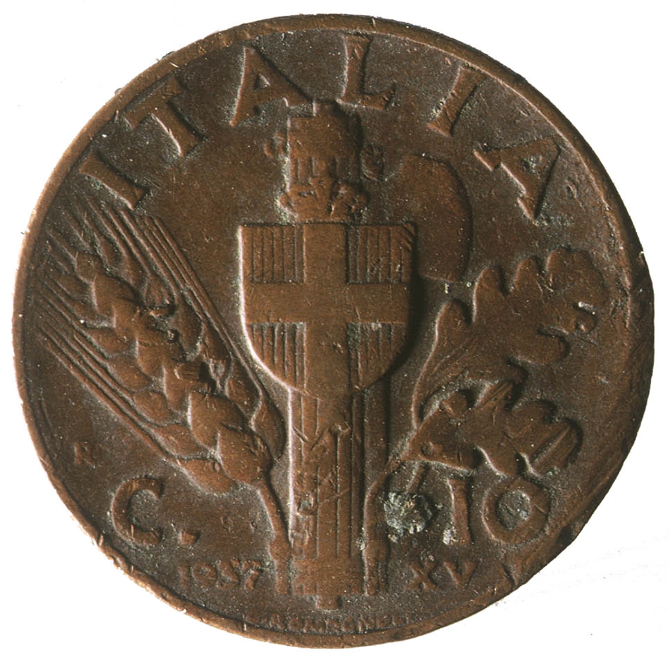Avers: Centralni dio kovanice zauzima profil osobe sa pogledom u lijevo. Kružno uz rub kovanice proteže se natpis VITT. EMAN. III. RE. E. IMP. Revers: Centralno mjesto na kovanici zauzima fascio sa grbom. Iznad njega polukružno uz rub nalazi se natpis ITALIA, sa njegove lijeve strane smjestio se klas žita, a sa desne dva hrastova lista. Na dnu sa lijeve strane fascia nalazi se godina 1937., a sa njegove desne strane rimski broj XV.