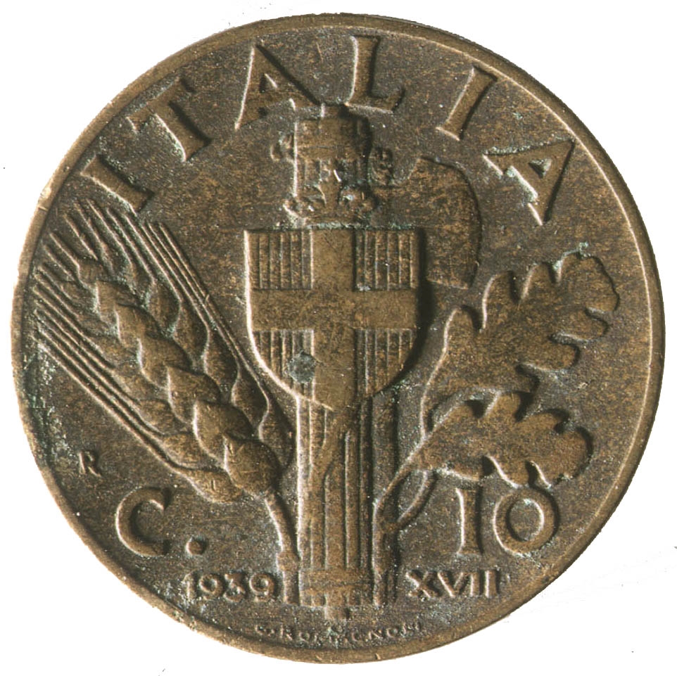 Centralno mjesto na kovanici zauzima fascio sa grbom. Iznad njega polukružno uz rub nalazi se natpis ITALIA, sa njegove lijeve strane smjestio se klas žita, a sa desne dva hrastova lista. Na dnu sa lijeve strane fascia nalazi se godina 1939., a sa njegove desne strane rimski broj XVII.