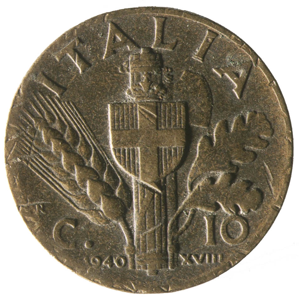 Centralno mjesto na kovanici zauzima fascio sa grbom. Iznad njega polukružno uz rub nalazi se natpis ITALIA, sa njegove lijeve strane smjestio se klas žita, a sa desne dva hrastova lista. Na dnu sa lijeve strane fascia nalazi se godina 1940., a sa njegove desne strane rimski broj XVIII.