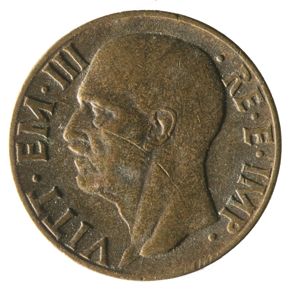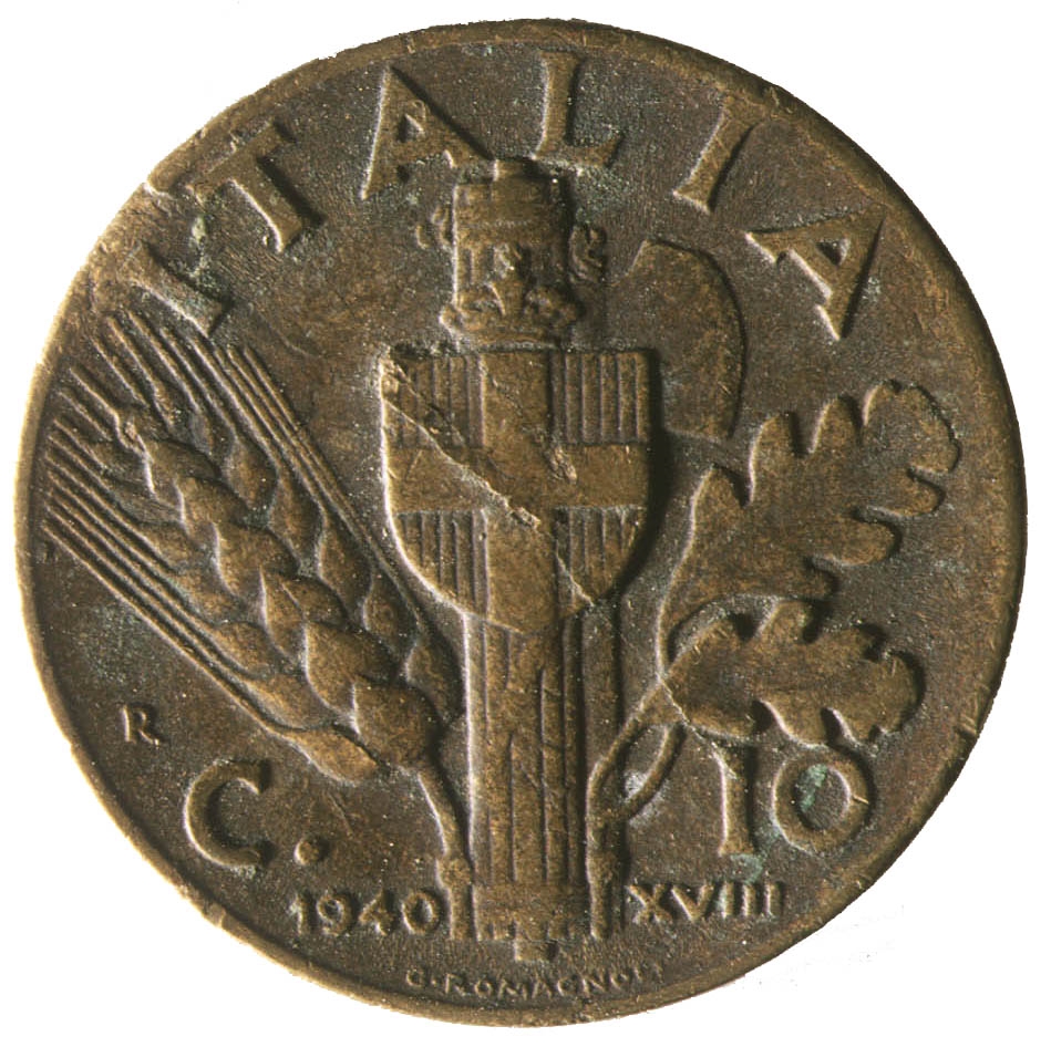 Centralno mjesto na kovanici zauzima fascio sa grbom. Iznad njega polukružno uz rub nalazi se natpis ITALIA, sa njegove lijeve strane smjestio se klas žita, a sa desne dva hrastova lista. Na dnu sa lijeve strane fascia nalazi se godina 1940., a sa njegove desne strane rimski broj XVIII.