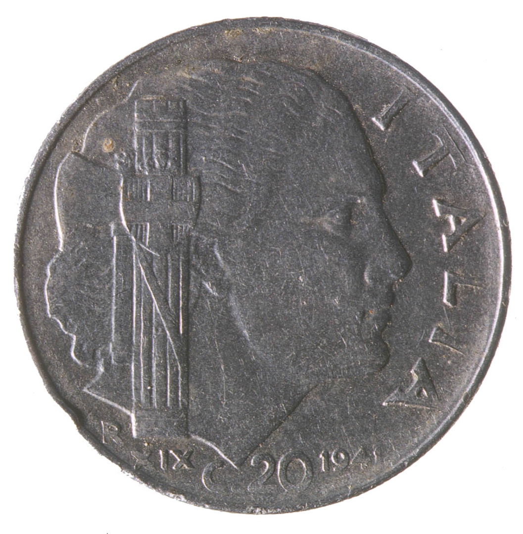 Centralni dio kovanice zauzima profil ženske osobe sa pogledom u desno. Sa njezine lijeve strane nalazi se fascio, a ispod njega slovo R i rimski brojXIX. Uz desni rub nalazi se natpis ITALIA, a na dnu C.20 i godina 1941.