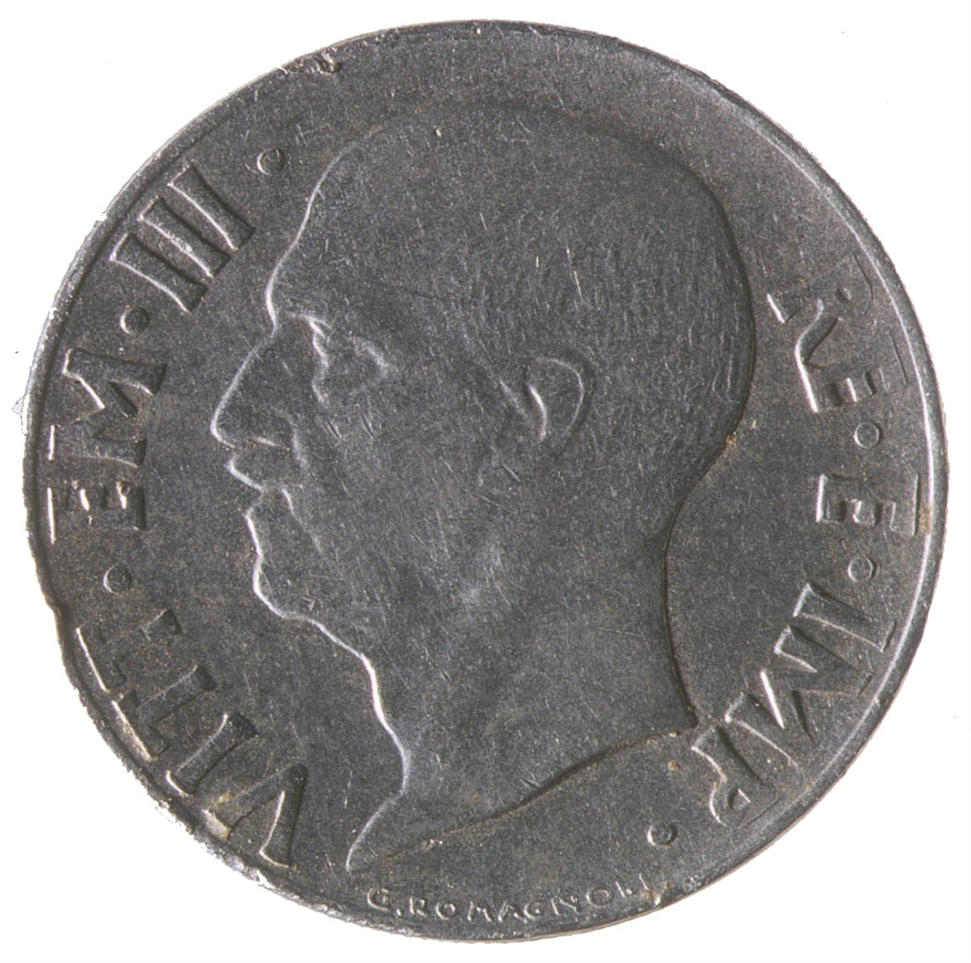 Centralni dio kovanice zauzima profil muške osobe sa pogledom u lijevo. Sa njegove lijeve strane nalazi se natpis VITT. EM.III., a sa njegove desne strane natpis RE.E.IMP. Na dnu uz rub nalazi se natpis G.ROMAGNOLI.