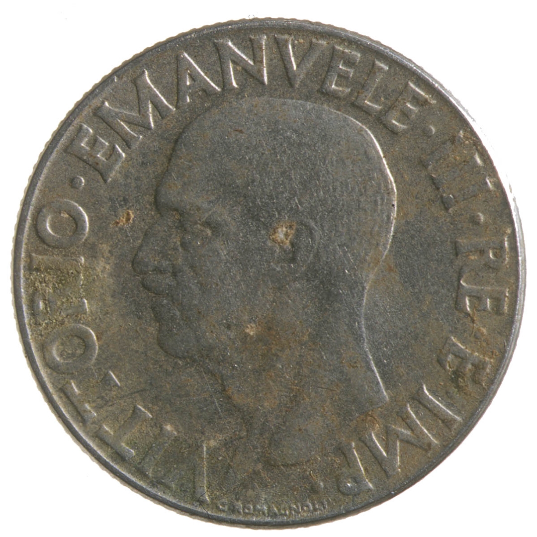 Centralni dio kovanice zauzima profil muške osobe sa pogledom u lijevo. Kružno uz rub kovanice proteže se natpis VITTORIO. EMANVELE. III. RE. E. IMP.. Na dnu uz rub nalazi se natpis G.ROMAGNOLI.