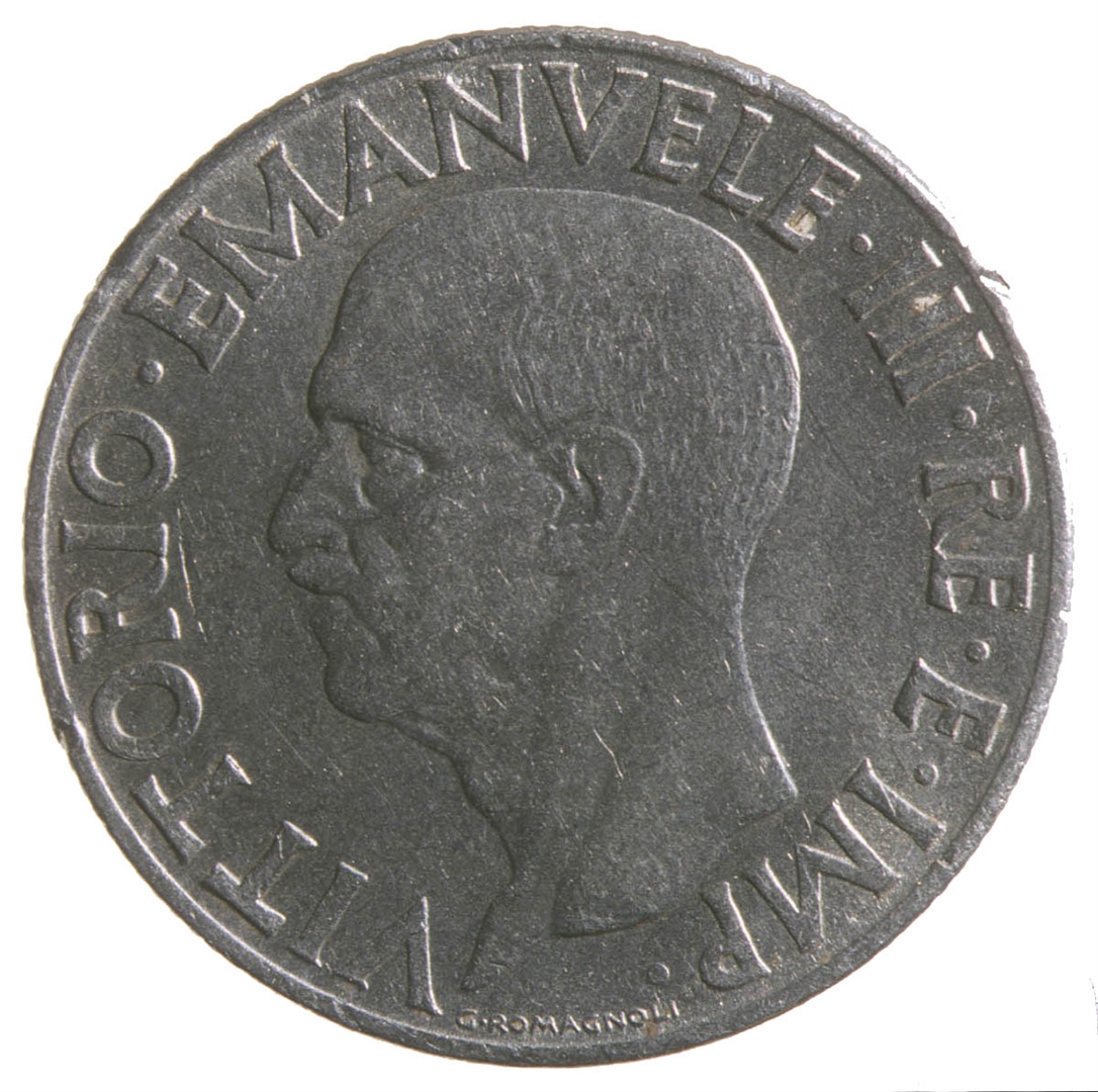 Centralni dio kovanice zauzima profil muške osobe sa pogledom u lijevo. Kružno uz rub kovanice proteže se natpis VITTORIO. EMANVELE. III. RE. E. IMP.. Na dnu uz rub nalazi se natpis G.ROMAGNOLI.