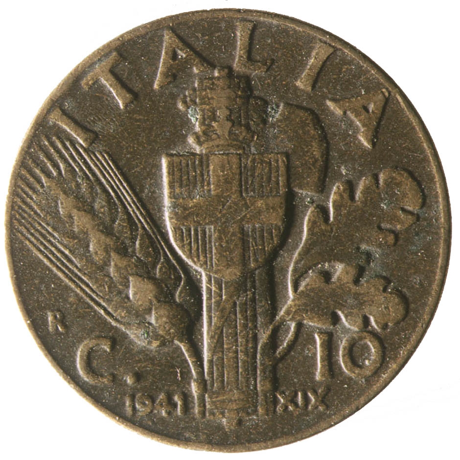 Centralno mjesto na kovanici zauzima fascio sa grbom. Iznad njega polukružno uz rub nalazi se natpis ITALIA, sa njegove lijeve strane smjestio se klas žita, a sa desne dva hrastova lista. Na dnu sa lijeve strane fascia nalazi se godina 1941., a sa njegove desne strane rimski broj XIX.