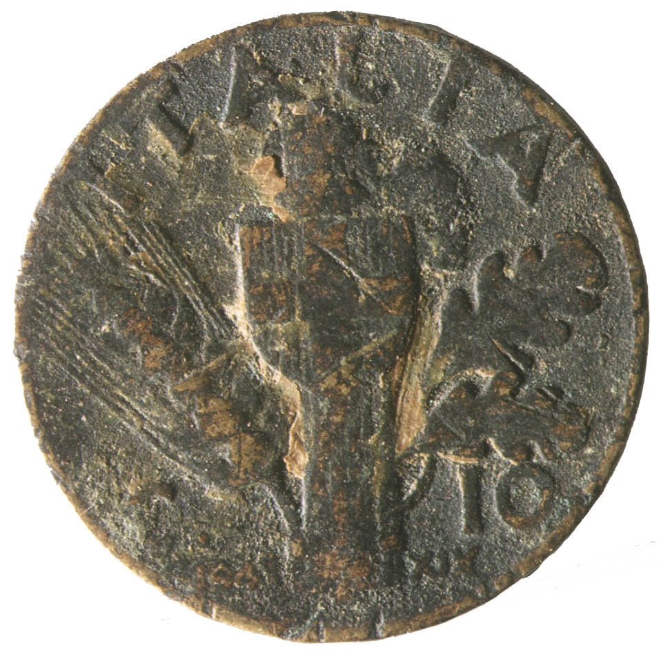 Avers: Centralni dio kovanice zauzima profil osobe sa pogledom u lijevo. Kružno uz rub kovanice proteže se natpis VITT. EMAN. III. RE. E. IMP. Revers: Centralno mjesto na kovanici zauzima fascio sa grbom. Iznad njega polukružno uz rub nalazi se natpis ITALIA, sa njegove lijeve strane smjestio se klas žita, a sa desne dva hrastova lista. Na dnu sa lijeve strane fascia nalazi se godina 1941., a sa njegove desne strane rimski broj XIX.