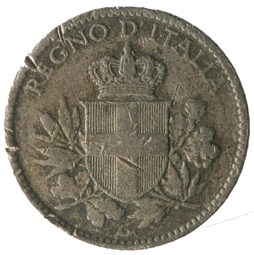 Središnji dio zauzima grb u obliku štita u čijem se središtu nalazi križ. Iznad štita nalazi se kruna, a bočno i ispod štita grančice sa lišćem. Iznad krune nalazi se polukružni natpis REGNO D''ITALIA. Rub je nazubljen.