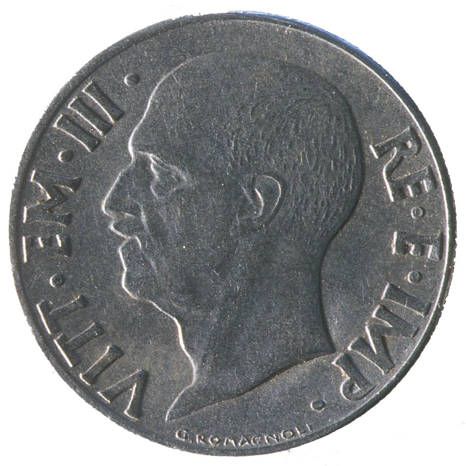 Centralni dio kovanice zauzima profil muške osobe sa pogledom u lijevo. Sa njegove lijeve strane nalazi se natpis VITT. EM.III, a sa njegove desne strane natpis RE.E.IMP. Na dnu uz rub nalazi se natpis G.ROMAGNOLI.
