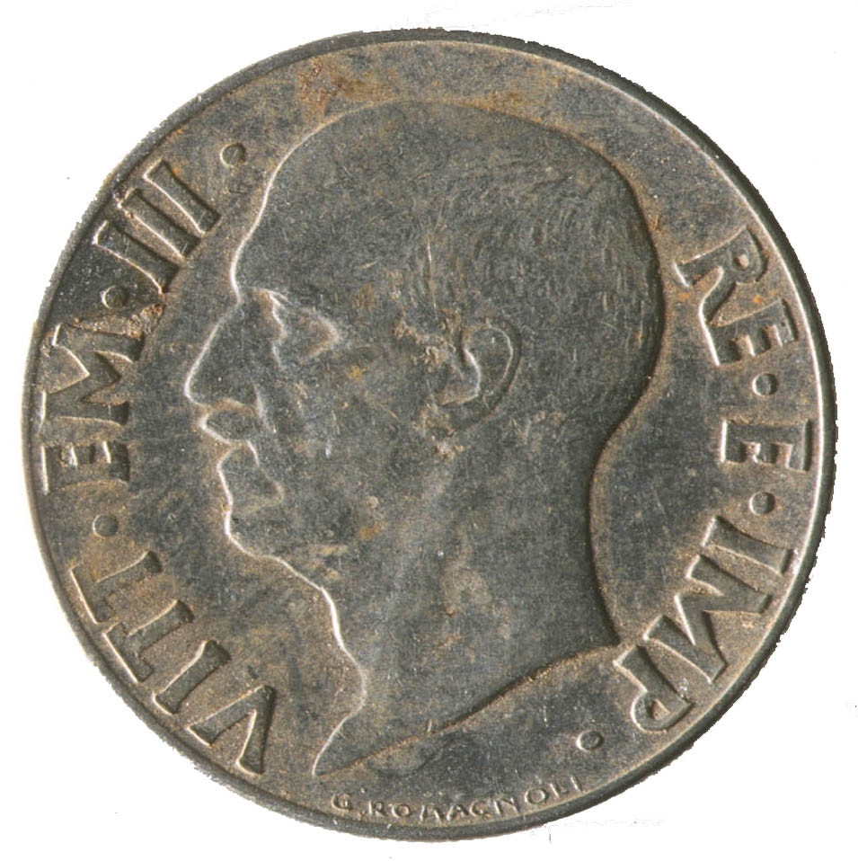 Centralni dio kovanice zauzima profil muške osobe sa pogledom u lijevo. Sa njegove lijeve strane nalazi se natpis VITT. EM.III, a sa njegove desne strane natpis RE.E.IMP. Na dnu uz rub nalazi se natpis G.ROMAGNOLI.