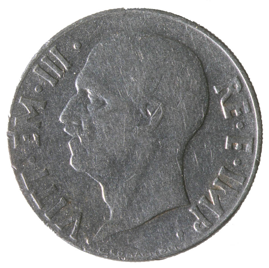 Centralni dio kovanice zauzima profil muške osobe sa pogledom u lijevo. Sa njegove lijeve strane nalazi se natpis VITT. EM.III, a sa njegove desne strane natpis RE.E.IMP. Na dnu uz rub nalazi se natpis G.ROMAGNOLI.