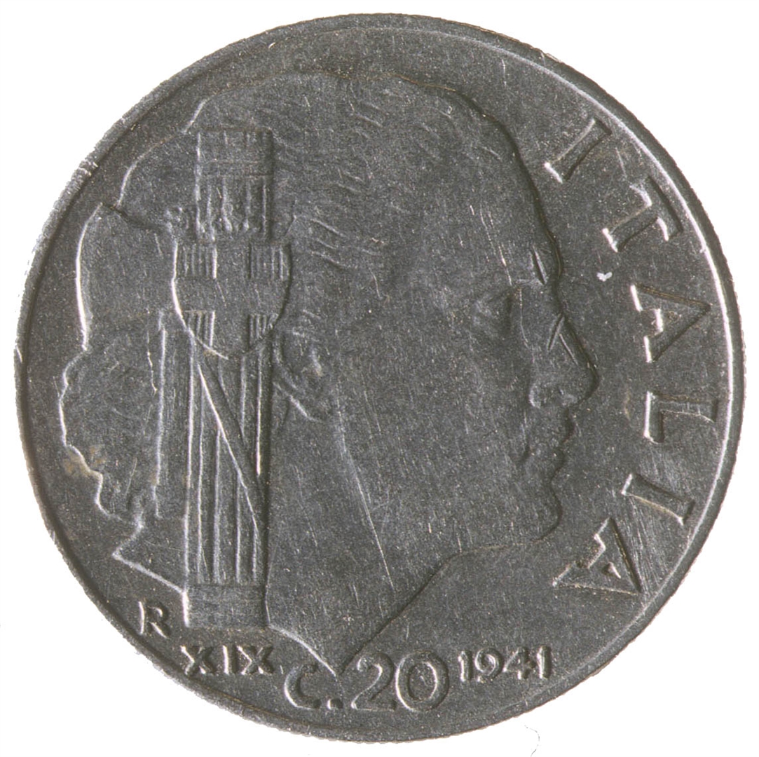 Centralni dio kovanice zauzima profil ženske osobe sa pogledom u desno. Sa njezine lijeve strane nalazi se fascio, a ispod njega slovo R i rimski brojXIX. Uz desni rub nalazi se natpis ITALIA, a na dnu C.20 i godina 1941.