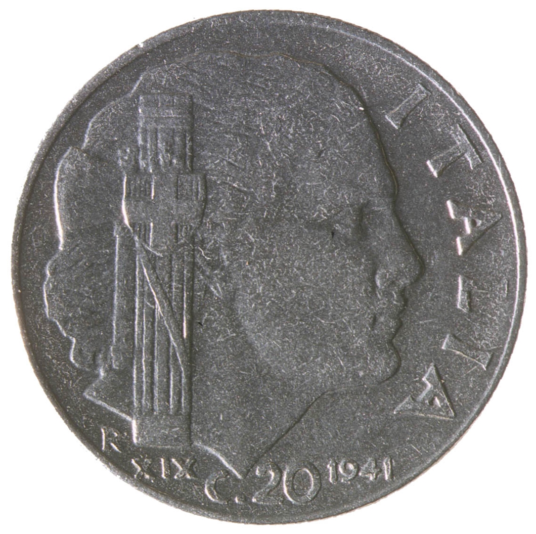 Centralni dio kovanice zauzima profil ženske osobe sa pogledom u desno. Sa njezine lijeve strane nalazi se fascio, a ispod njega slovo R i rimski brojXIX. Uz desni rub nalazi se natpis ITALIA, a na dnu C.20 i godina 1941.