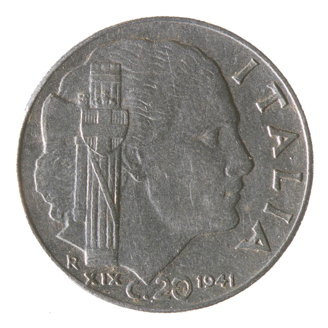 Centralni dio kovanice zauzima profil ženske osobe sa pogledom u desno. Sa njezine lijeve strane nalazi se fascio, a ispod njega slovo R i rimski brojXIX. Uz desni rub nalazi se natpis ITALIA, a na dnu C.20 i godina 1941.