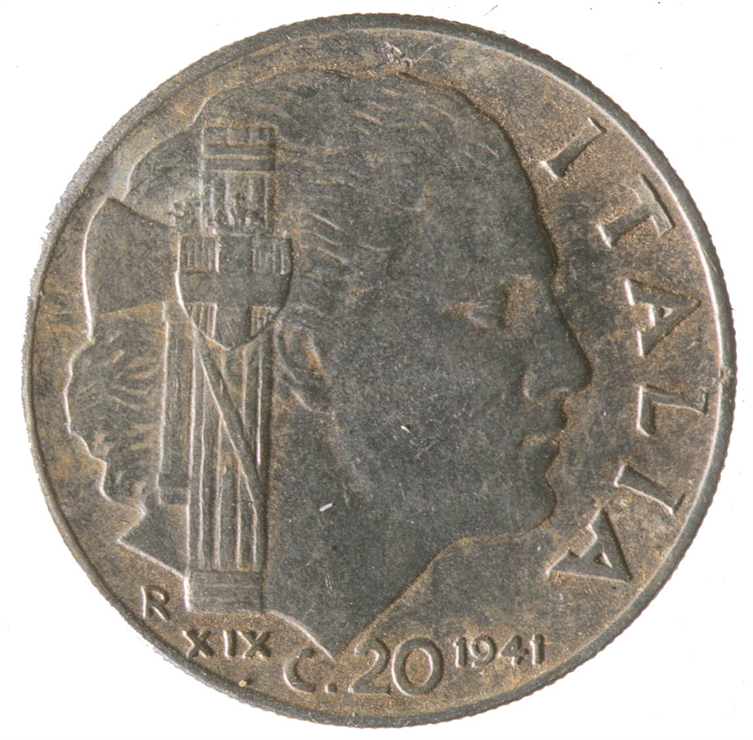 Centralni dio kovanice zauzima profil ženske osobe sa pogledom u desno. Sa njezine lijeve strane nalazi se fascio, a ispod njega slovo R i rimski brojXIX. Uz desni rub nalazi se natpis ITALIA, a na dnu C.20 i godina 1941.