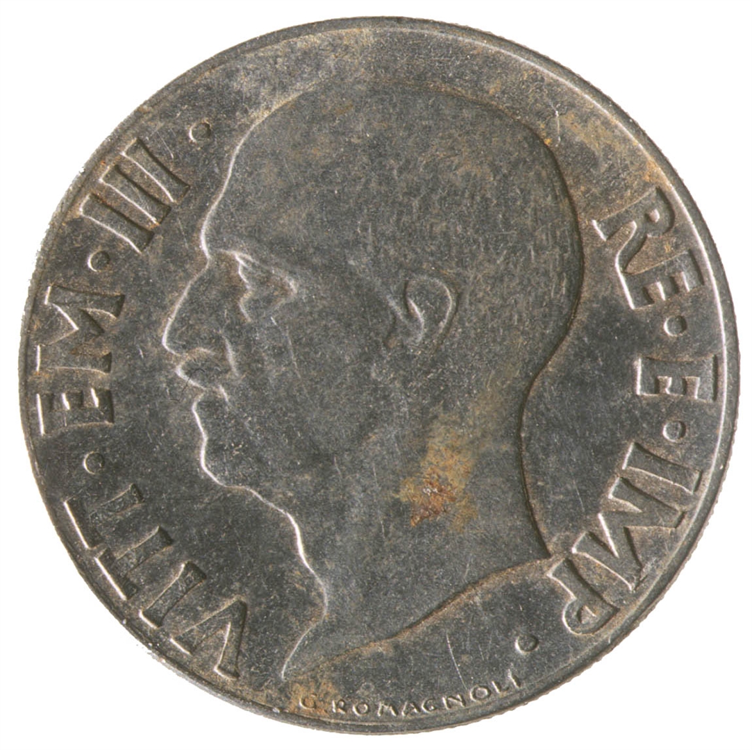 Centralni dio kovanice zauzima profil muške osobe sa pogledom u lijevo. Sa njegove lijeve strane nalazi se natpis VITT. EM.III., a sa njegove desne strane natpis RE.E.IMP. Na dnu uz rub nalazi se natpis G.ROMAGNOLI.