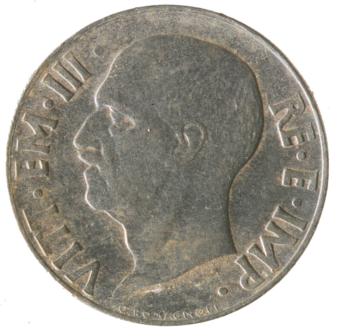 Centralni dio kovanice zauzima profil muške osobe sa pogledom u lijevo. Sa njegove lijeve strane nalazi se natpis VITT. EM.III., a sa njegove desne strane natpis RE.E.IMP. Na dnu uz rub nalazi se natpis G.ROMAGNOLI.