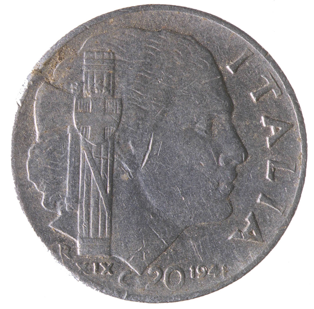 Centralni dio kovanice zauzima profil ženske osobe sa pogledom u desno. Sa njezine lijeve strane nalazi se fascio, a ispod njega slovo R i rimski brojXIX. Uz desni rub nalazi se natpis ITALIA, a na dnu C.20 i godina 1941.