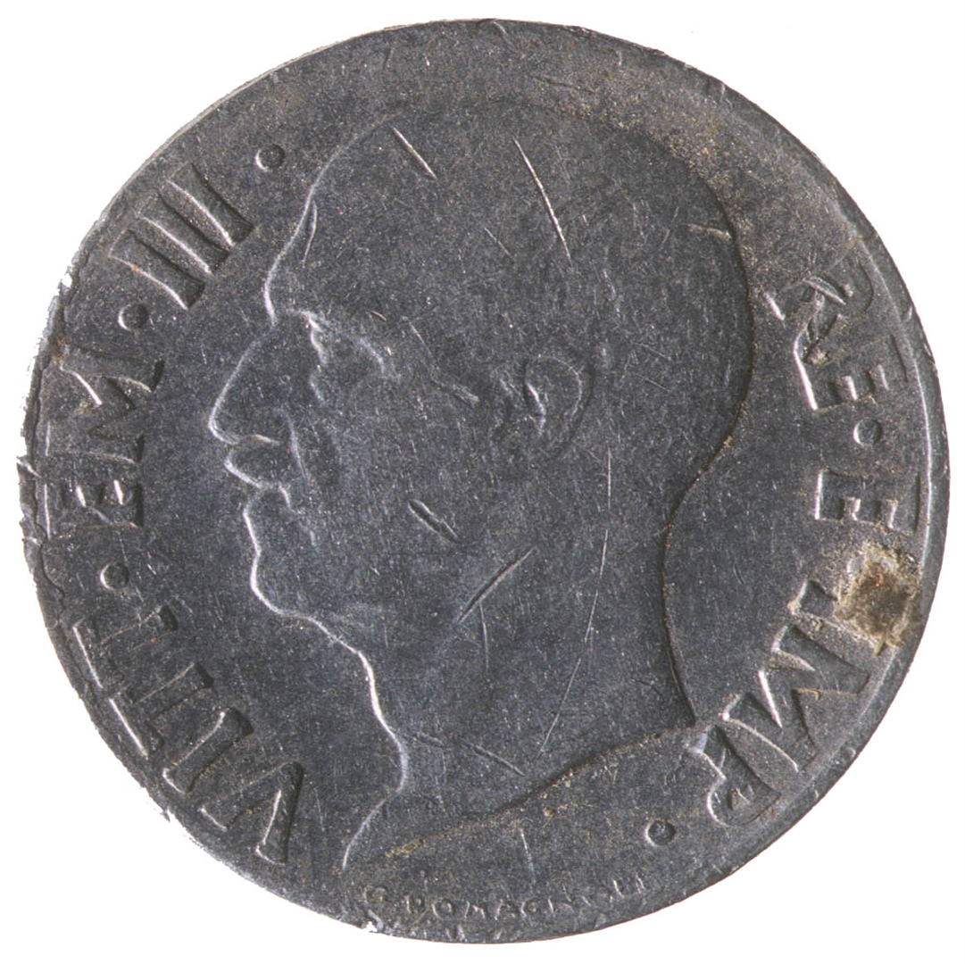 Centralni dio kovanice zauzima profil muške osobe sa pogledom u lijevo. Sa njegove lijeve strane nalazi se natpis VITT. EM.III., a sa njegove desne strane natpis RE.E.IMP. Na dnu uz rub nalazi se natpis G.ROMAGNOLI.