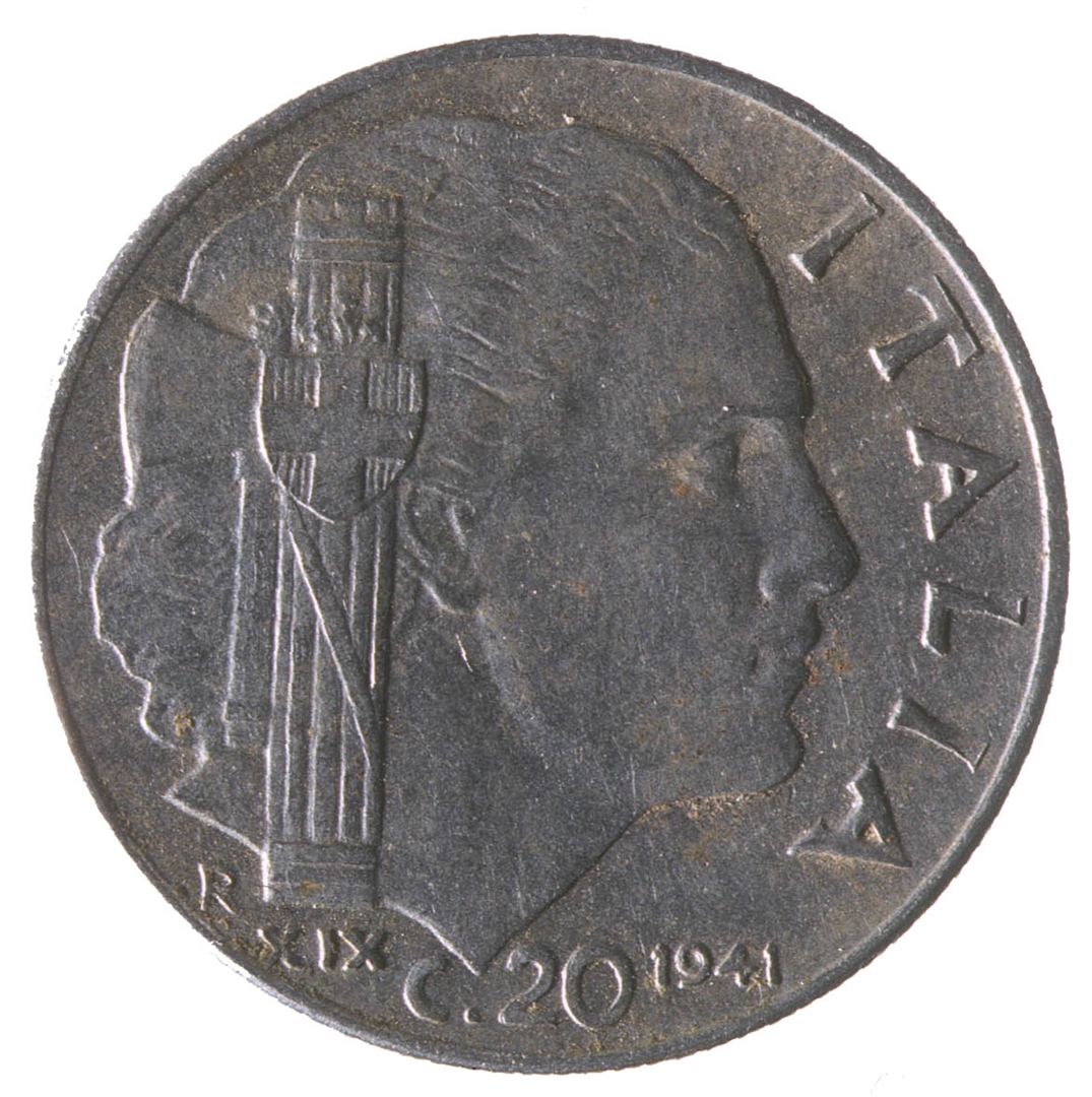 Centralni dio kovanice zauzima profil ženske osobe sa pogledom u desno. Sa njezine lijeve strane nalazi se fascio, a ispod njega slovo R i rimski brojXIX. Uz desni rub nalazi se natpis ITALIA, a na dnu C.20 i godina 1941.