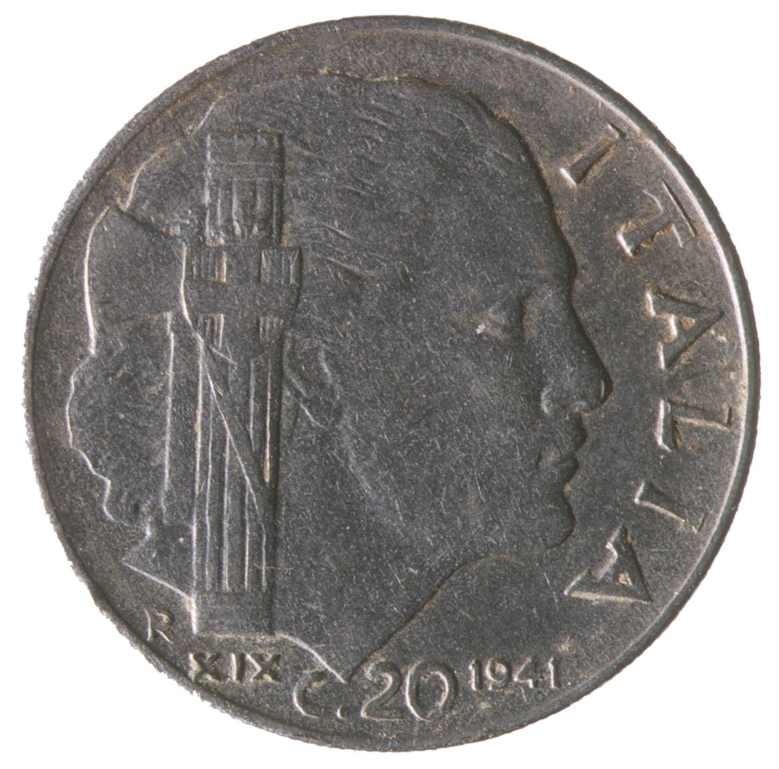 Centralni dio kovanice zauzima profil ženske osobe sa pogledom u desno. Sa njezine lijeve strane nalazi se fascio, a ispod njega slovo R i rimski brojXIX. Uz desni rub nalazi se natpis ITALIA, a na dnu C.20 i godina 1941.