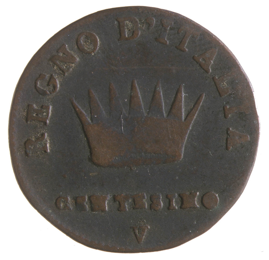 Avers: U sredini profil Napoleona s pogledom u lijevo. Oko ruba natpis NAPOLEONE IMPERATORE E RE , a ispod vrata godinja kovanja 1810. Revers: U sredini radijalna kruna. Iznad nje polukružni natpis REGNO D''ITALIA, a ispod krune oznaka vrijednosti CENTESIMO i slovo V oznaka kovnice.