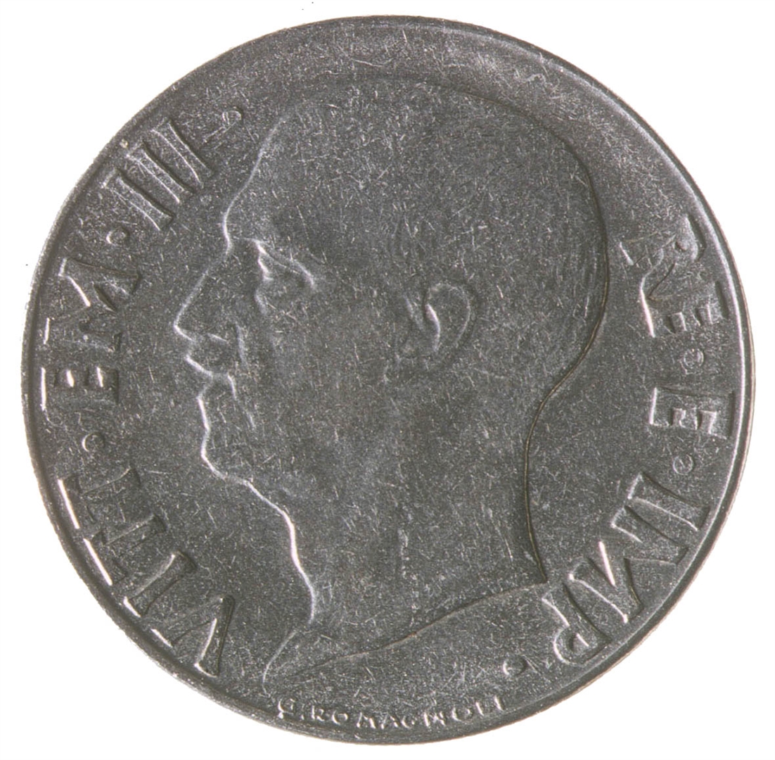 Centralni dio kovanice zauzima profil muške osobe sa pogledom u lijevo. Sa njegove lijeve strane nalazi se natpis VITT. EM.III., a sa njegove desne strane natpis RE.E.IMP. Na dnu uz rub nalazi se natpis G.ROMAGNOLI.