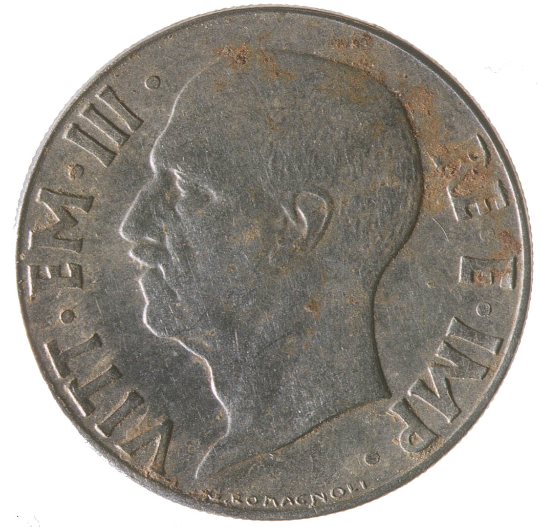 Centralni dio kovanice zauzima profil muške osobe sa pogledom u lijevo. Sa njegove lijeve strane nalazi se natpis VITT. EM.III., a sa njegove desne strane natpis RE.E.IMP. Na dnu uz rub nalazi se natpis G.ROMAGNOLI.