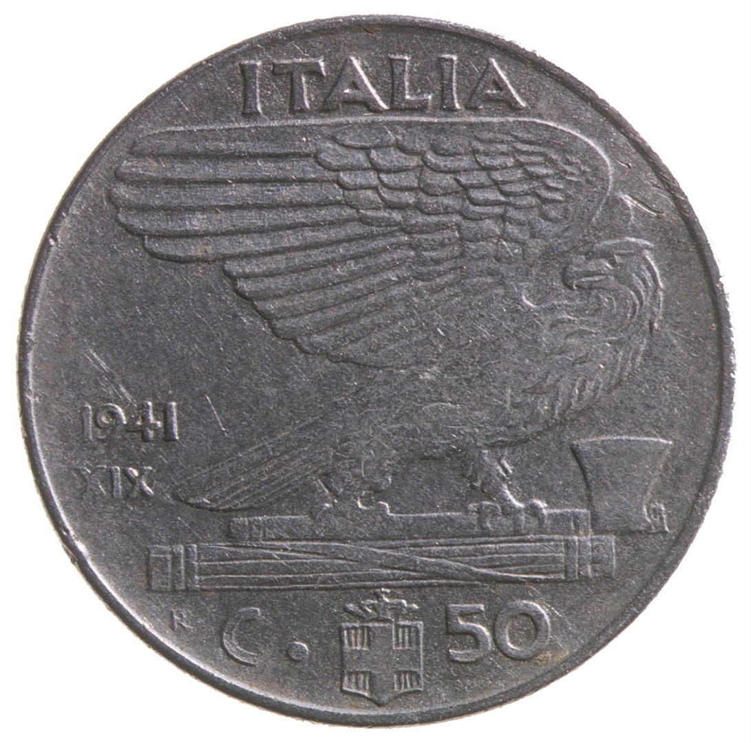 Centralni dio reversa zauzima prikaz orla raširenih krila koji u kanđama drži fascio. Iznad njega nalazi se natpis ITALIA, a sa njegove desne strane godina 1941 i rimski broj XIX. U dnu na sredini nalazi se grb s čije se desne strane nalazi broj 50, a sa lijeve strane slovo C. Lijevo od slova C nalazi se malo slovo R.