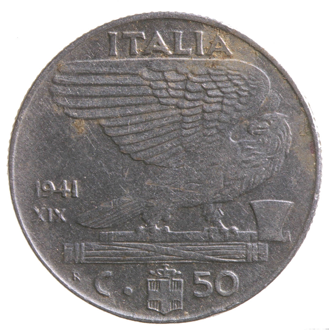 Centralni dio reversa zauzima prikaz orla raširenih krila koji u kanđama drži fascio. Iznad njega nalazi se natpis ITALIA, a sa njegove desne strane godina 1941 i rimski broj XIX. U dnu na sredini nalazi se grb s čije se desne strane nalazi broj 50, a sa lijeve strane slovo C. Lijevo od slova C nalazi se malo slovo R.
